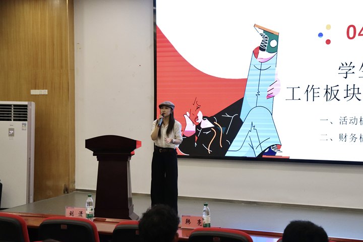 随后,刘潇老师就社团具体工作进行系统讲解。她回顾了上学年工作的亮点与不足,并提出改进建议,同时围绕社团运营全流程展开指导,尤其对财务报账材料等关键环节作了清晰说明,为各社团规范管理提供实用支持。