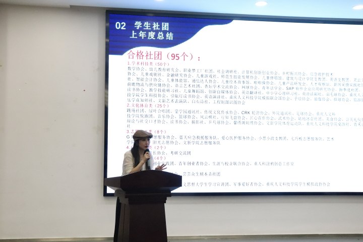 会议最后,校团委大学生素质教育中心学生负责人杜文卓同学详细介绍了“第二课堂”的操作流程,涵盖报名、活动安排与学分认定等环节,通过实例对比明确积分认定标准,助力社团活动与第二课堂实现高效衔接。