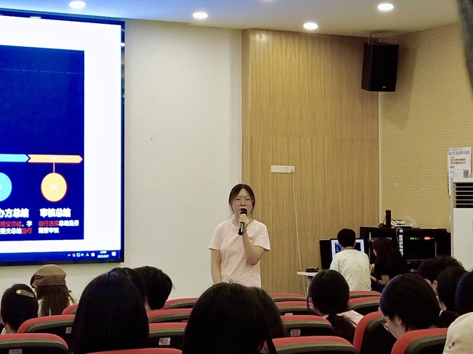 随后,刘潇老师就社团具体工作进行系统讲解。她回顾了上学年工作的亮点与不足,并提出改进建议,同时围绕社团运营全流程展开指导,尤其对财务报账材料等关键环节作了清晰说明,为各社团规范管理提供实用支持。