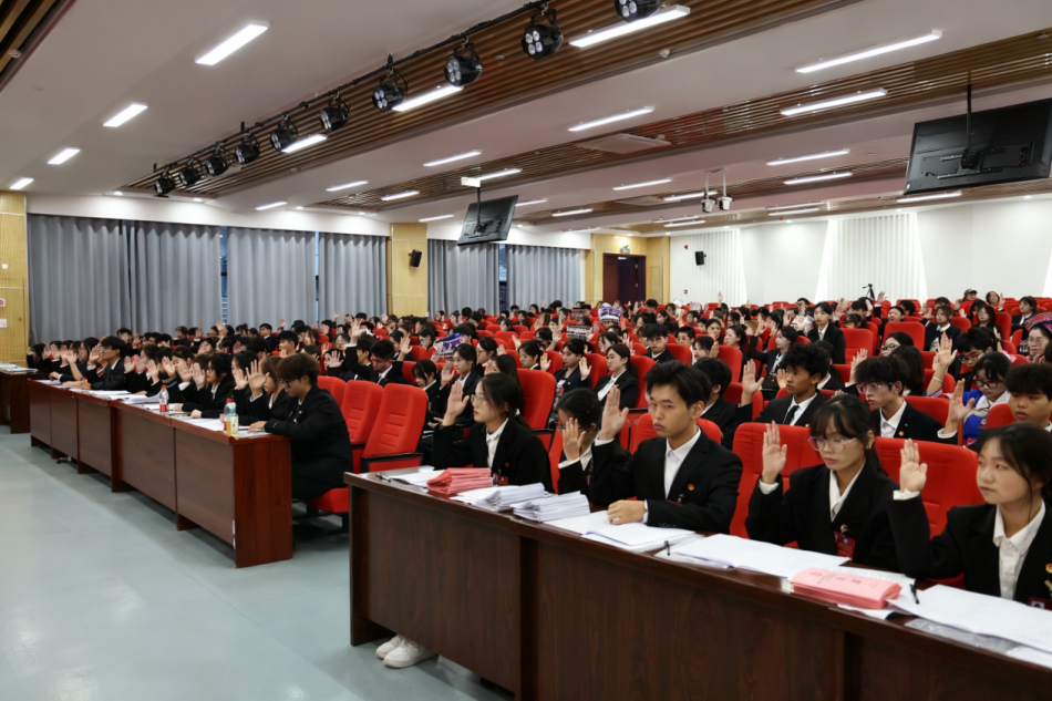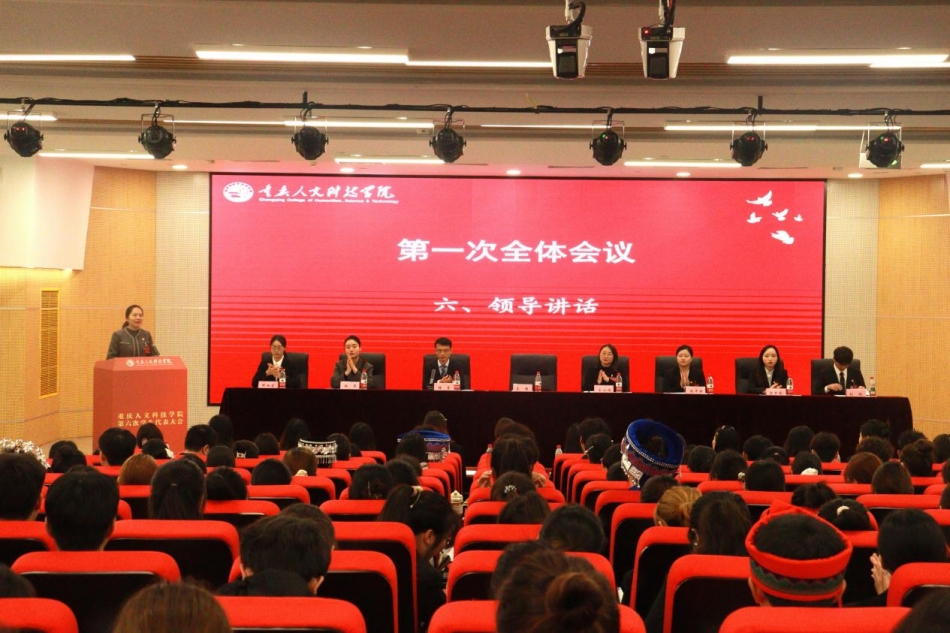 号角催征启新程,青春聚力谱华章!2025年11月6日,重庆人文科技学院第六次学生代表大会在卓立楼105报告厅盛大启幕!全校260余名代表齐聚一堂,同赴盛会。校长助理、学生处处长吴静,党群工作部部长王小娟,学生处副处长、校团委兼职副书记段华琼,校团委委员、各二级学院团总支书记、兄弟高校学生组织代表出席大会。此外,重庆大学、西南大学、西南政法大学等三十余所高校发来贺电、贺信,对大会的胜利召开表示热烈祝贺。大会开幕式由校团委书记韩亮主持。