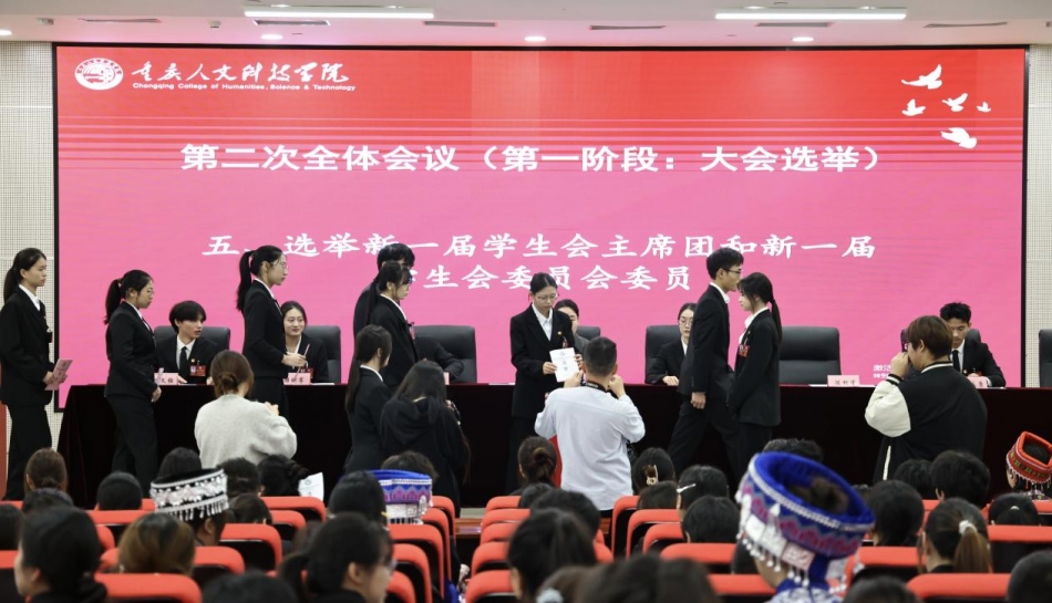 会上,总监票人宣布了重庆人文科技学院第六次学生会主席团和学生委员会选举结果。
