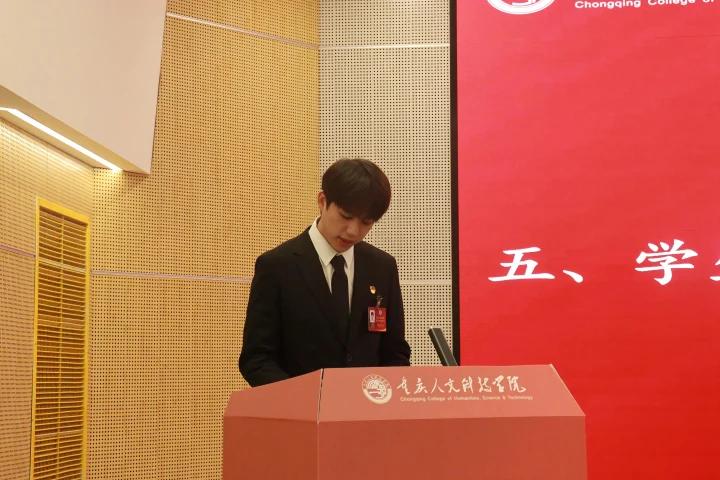 上午9时,重庆人文科技学院第六次学生代表大会预备会议在卓立楼105报告厅准时召开,会议由校团委宣传部副部长仇寒主持。