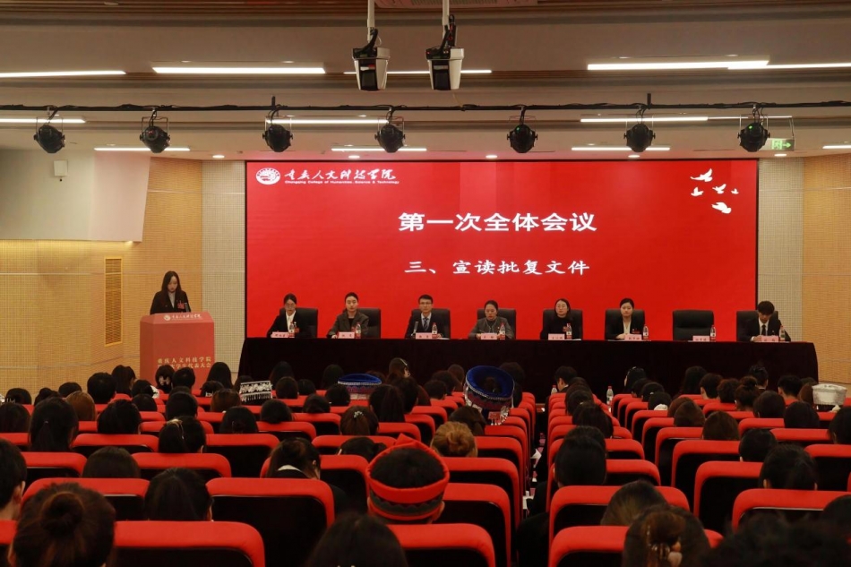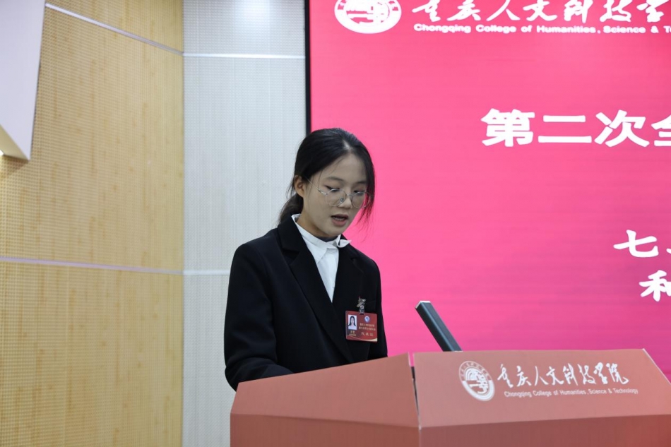 党群工作部部长王小娟、市学联代表殷梦婷分别宣读了中共重庆人文科技学院委员会《关于同意召开重庆人文科技学院第六次学生代表大会的批复》和重庆市学生联合会《关于同意召开重庆人文科技学院第六次学生代表大会的批复》。