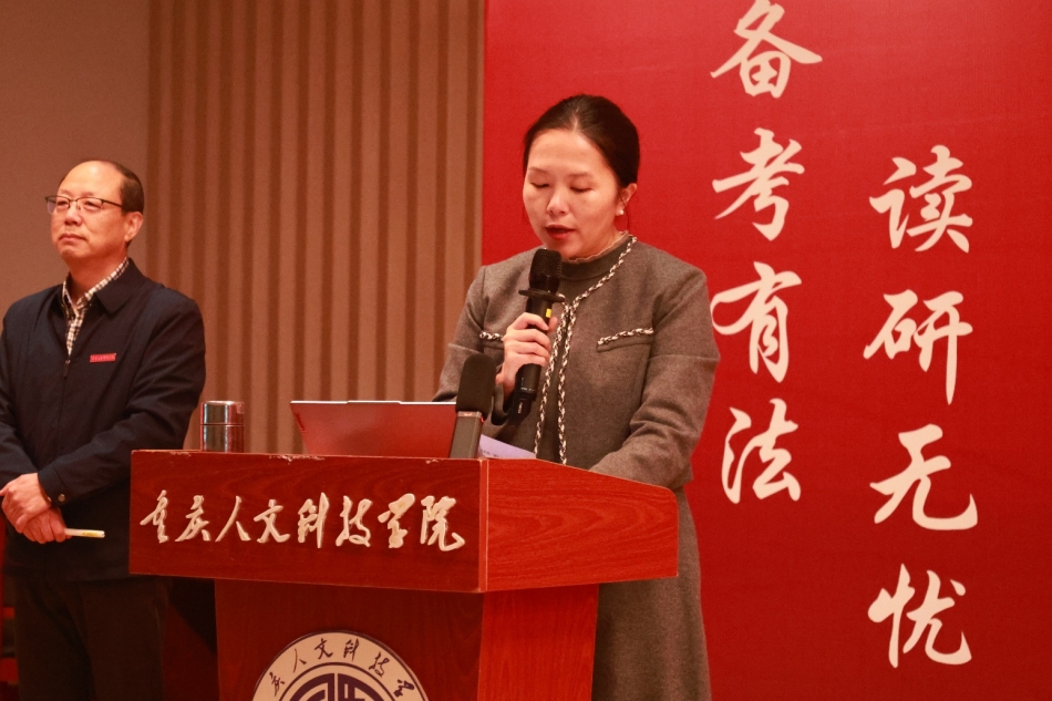 校长助理、学生处处长吴静在开场致辞中详细介绍了周光明在学术研究、教学实践及高等教育管理领域的深厚积淀与卓越成就。她指出,周光明校长到任以来,始终聚焦学生成长发展需求,深入校园一线开展调研,以系统化举措全力为我校学子的考研之路保驾护航。