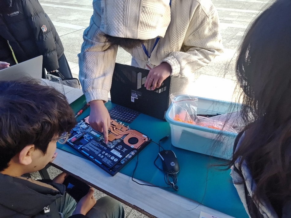 (图为学生维修电脑)
