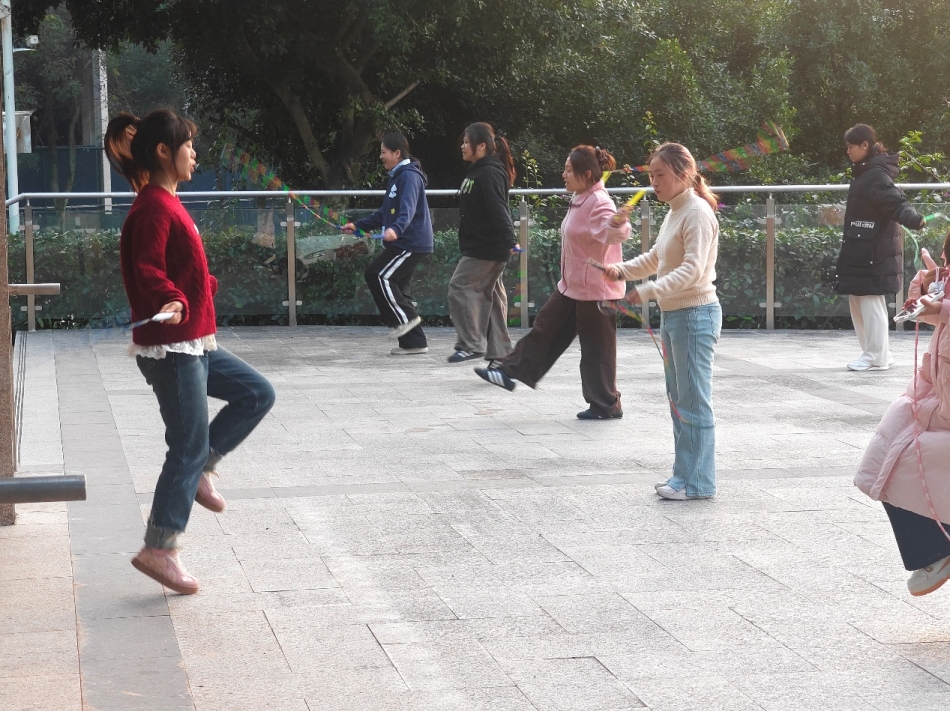 (图为学生正在跳绳)