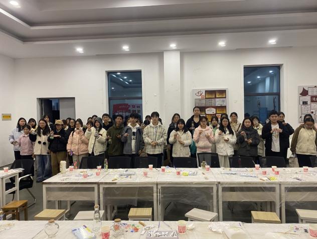 在沁心楼的团学之家里,50名同学共同参与“瓶添异彩——手绘琉璃瓶创作活动”。晶莹剔透的玻璃瓶与色彩鲜亮的丙烯颜料成为当晚的核心道具。负责人示范了通过勾线、填色、晕染等技巧,将素净瓶身装点成独具个性的艺术作品的完整过程。
