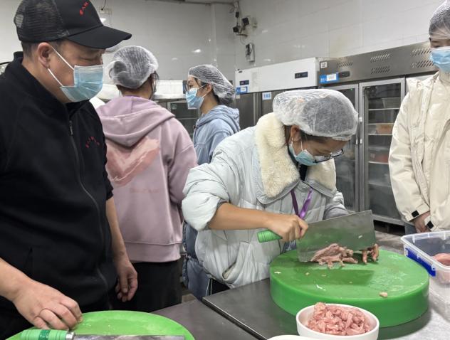 活动打破了传统的厨艺教学模式,设置了沉浸式实操环节。在食堂厨师的专业指导下,17位同学系统学习了从食材处理、调料搭配到火候把控的完整流程,掌握鱼香肉丝和尖椒兔等食材的核心烹饪技巧。随后的“创意调味”小比拼环节,则通过自由搭配食材风味的方式,让大家在实践中解锁烹饪乐趣、巩固实操技能。